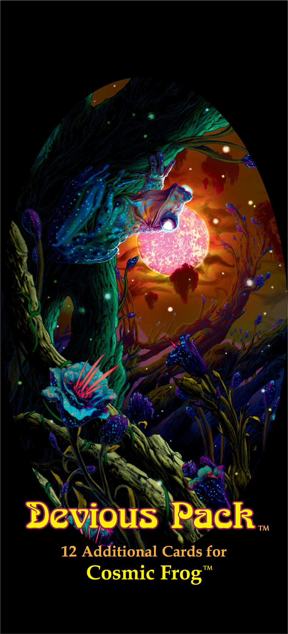 The Devious Pack adds six new ability cards and six extra action cards to the base Cosmic Frog game. This card pack is designed to work only with the base game.