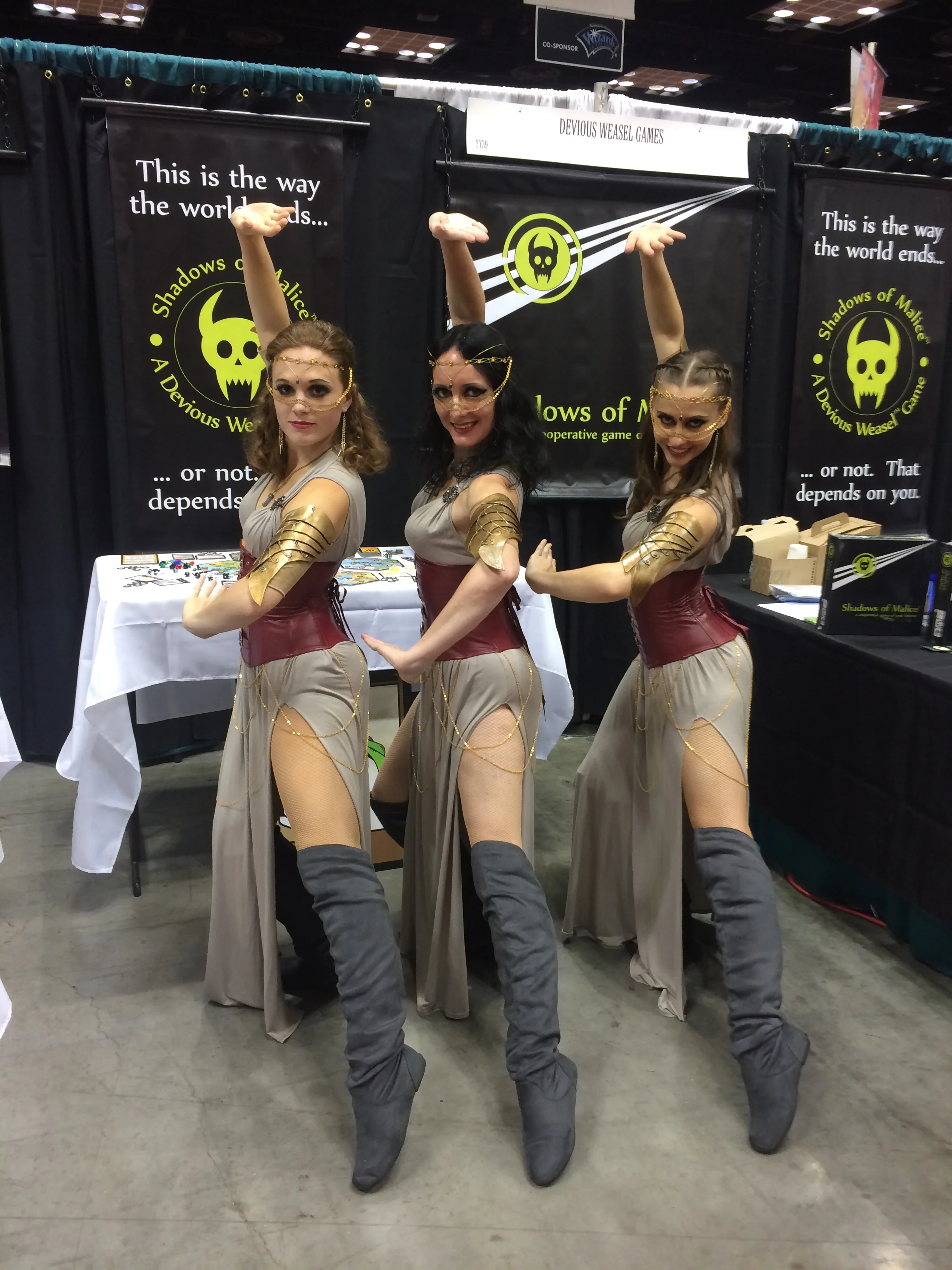 Devious Weasel Games was proud to have three exceptionally talented dancers from the outstanding and provocative Gregory Hancock Dance Theatre perform an original dance for booth visitors. From left to right: Heather Helene King, Dana Backes, and Alannah Cataldo. You can read their bios here.
